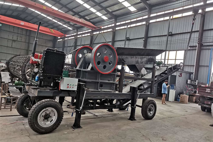The materials are uniformly conveyed into the crusher by the feeder, and after preliminary crushing by the jaw crusher, a closed circuit system is formed through a circular vibrating screen to achieve circular crushing of the materials. The finished materials are output by the conveyor for continuous crushing operation. The jaw breaking mobile crushing station can remove the circular vibrating screen according to actual production needs, achieving preliminary crushing of materials directly. It is convenient and flexible to use in conjunction with other crushing equipment.